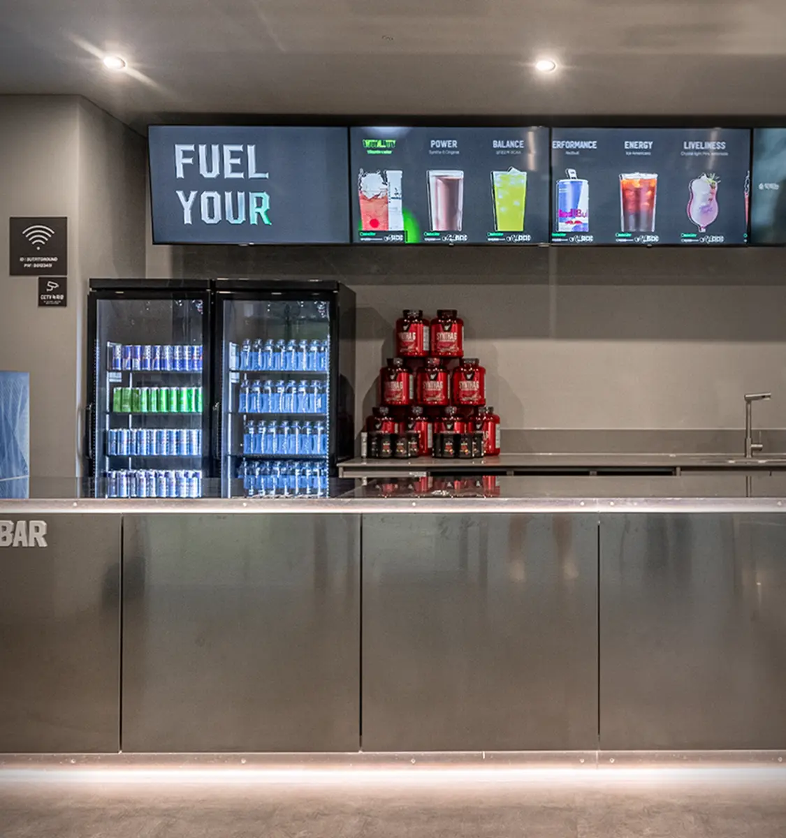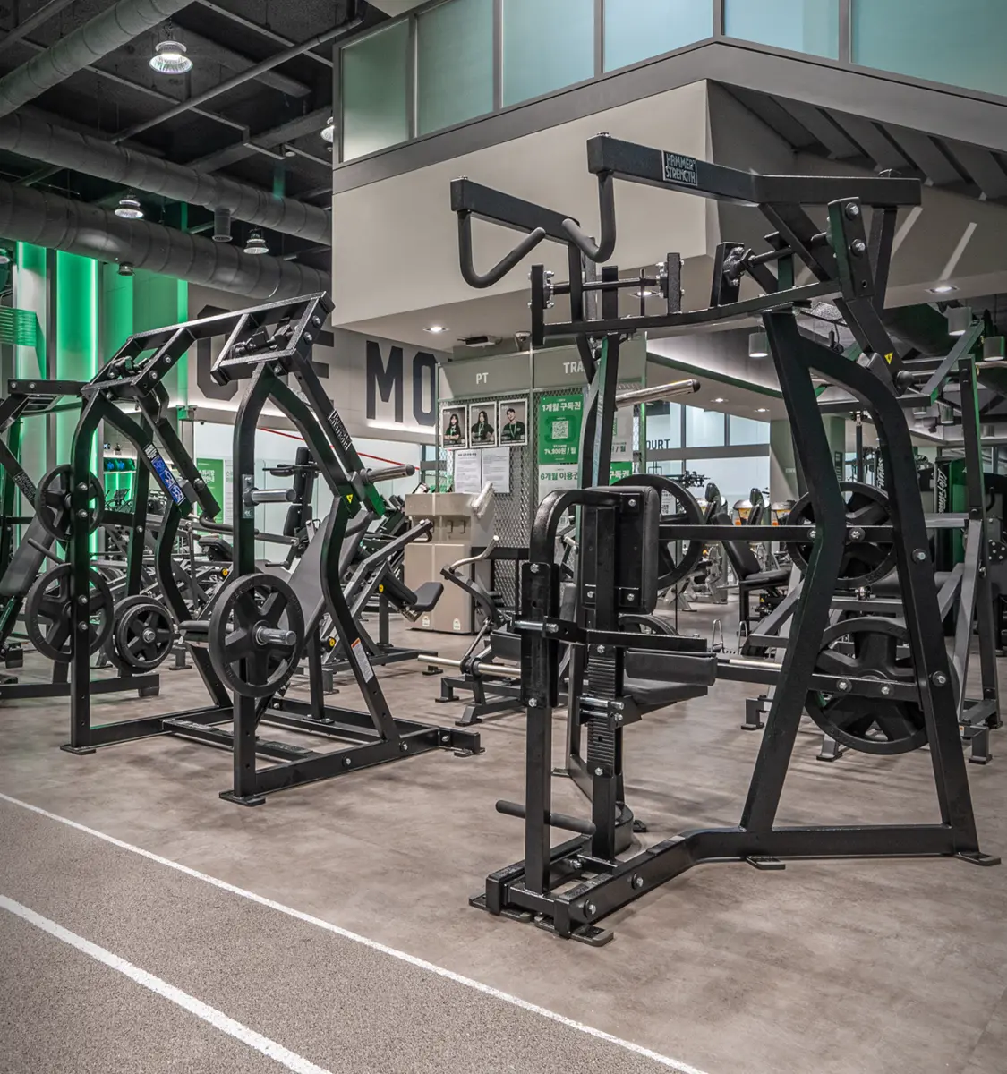 600평 규모의 쾌적하고 넓은 공간에 압도적인 프리미엄 머신 브랜드들로 구성되어 있습니다. 트레드밀, 사이클, 천국의계단 등의 다양한 유산소 머신은 물론, 꾸준한 운동을 돕는 버핏그라운드만의 <플레이트> 마일리지 시스템도 준비되어 있어요